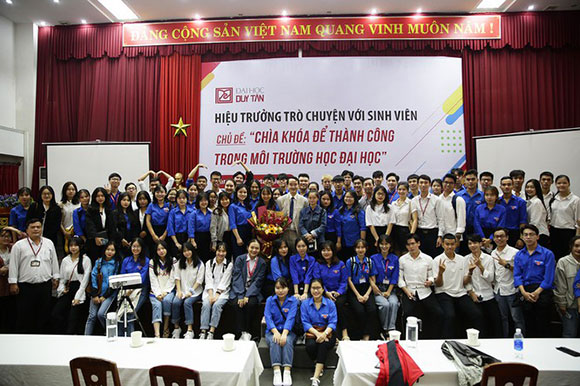 Tiến sĩ Lê Nguyên Bảo - Hiệu trưởng Trường Đại học Duy Tân trò chuyện với sinh viên về cách học ở môi trường Đại học