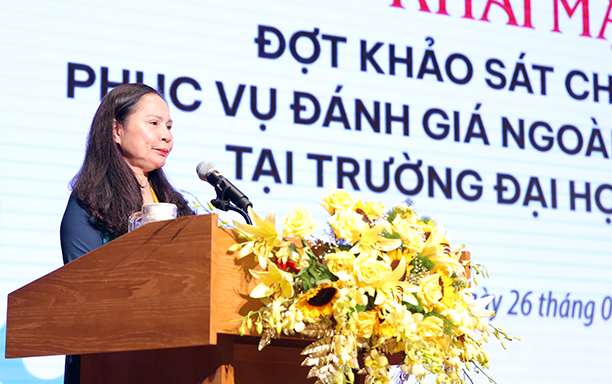 PGS. TS. Nguyễn Phương Nga phát biểu tại Lễ Khai mạc Khảo sát chính thức phục vụ Đánh giá ngoài Cơ sở Giáo dục tại Trường Đại học Duy Tân